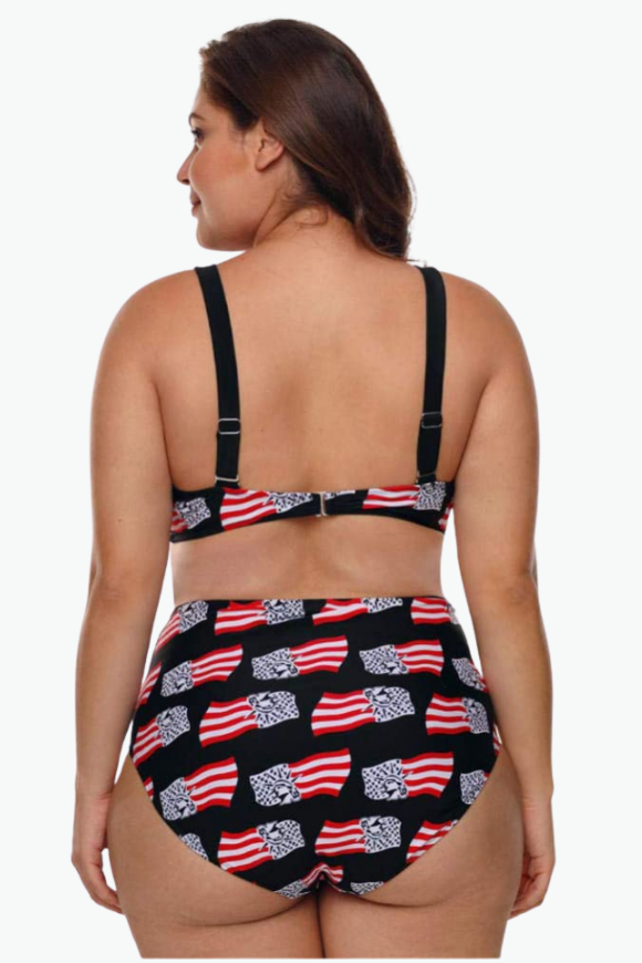 Flag Printed Two Piece Plus Size Swimsuit
