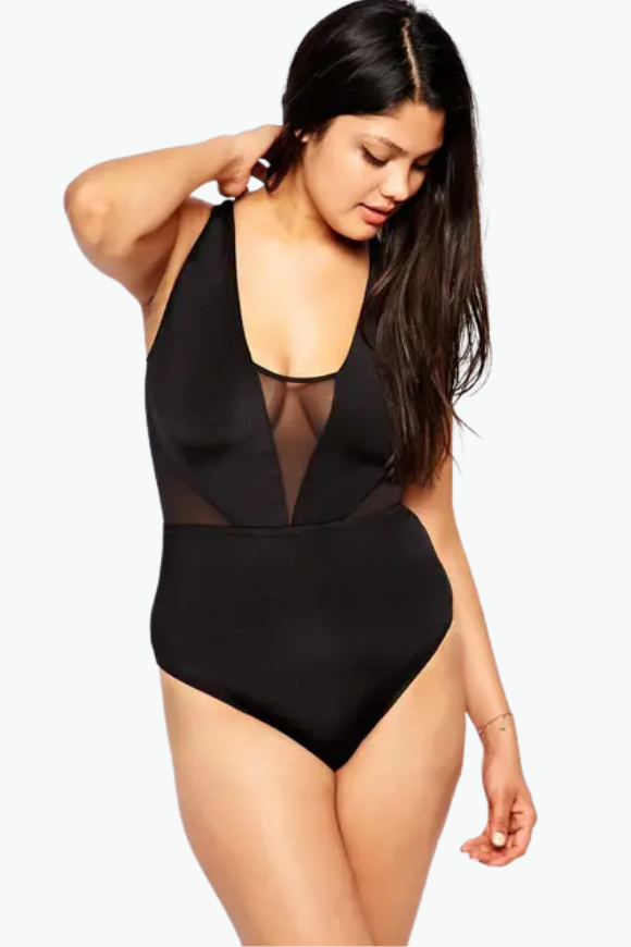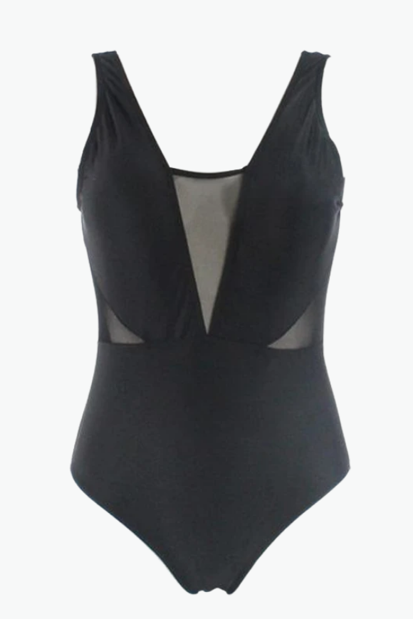 Black Deep Mesh One Piece Plus Size Swimsuit