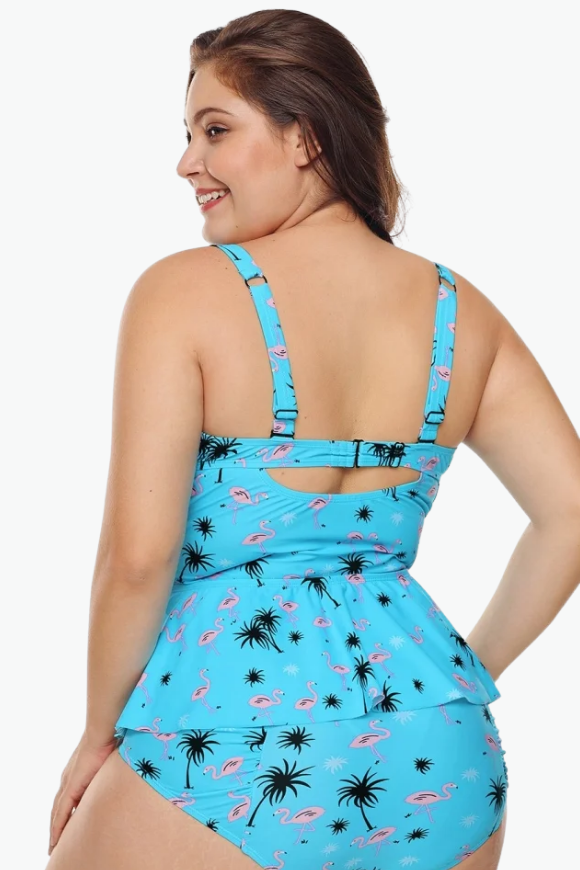 Blue Printed Two Piece Plus Size Swimsuit
