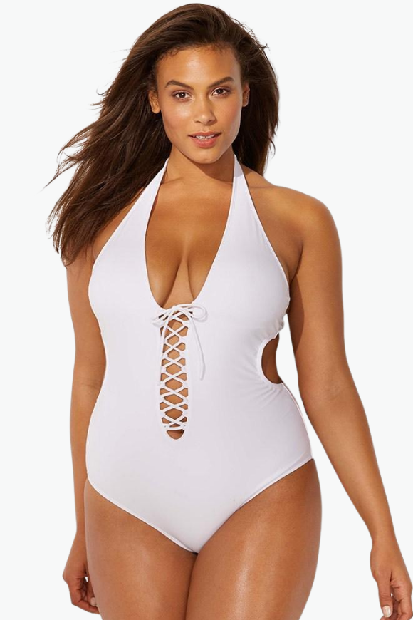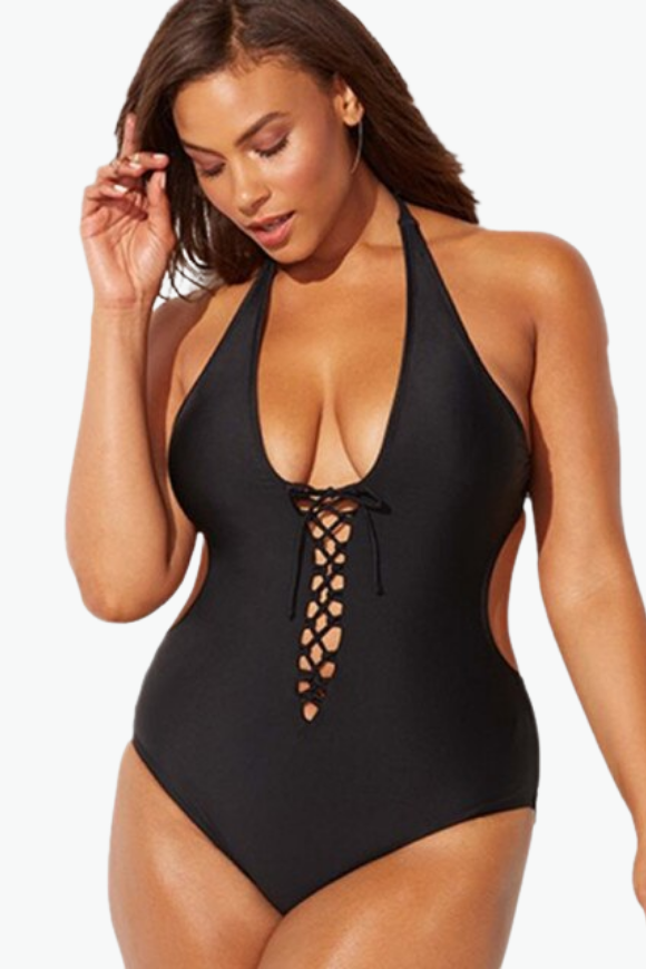 Cutout Solid One Piece Plus Size Swimsuit