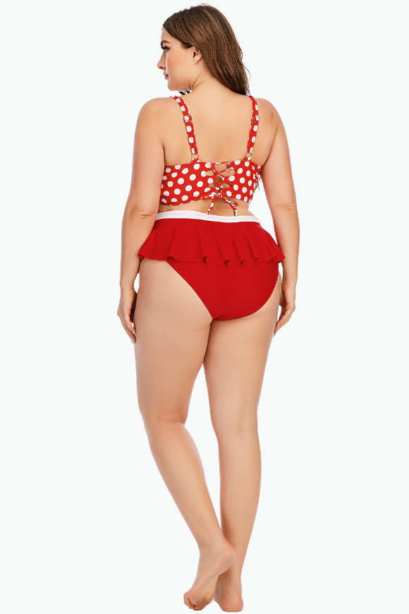 Red Polka Two Piece Plus Size Swimsuit