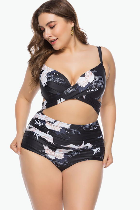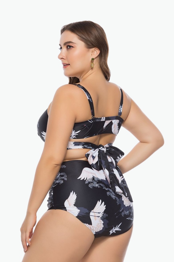 Black & White Bird Two Piece Plus Size Swimsuit