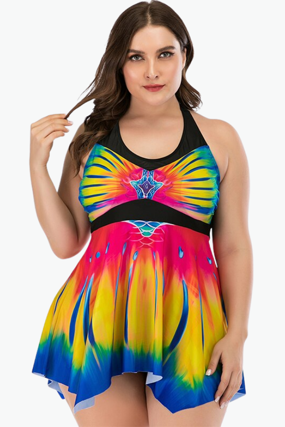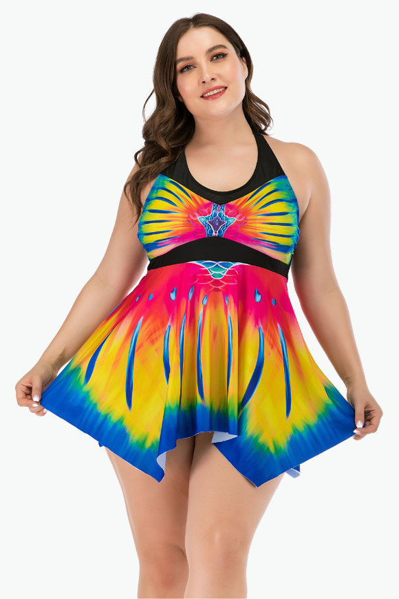 Rainbow Multicolor Two Piece Tankini Plus Size Swimsuit