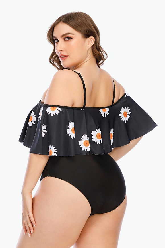 Black Off-Shoulder One Piece Plus Size Swimsuit