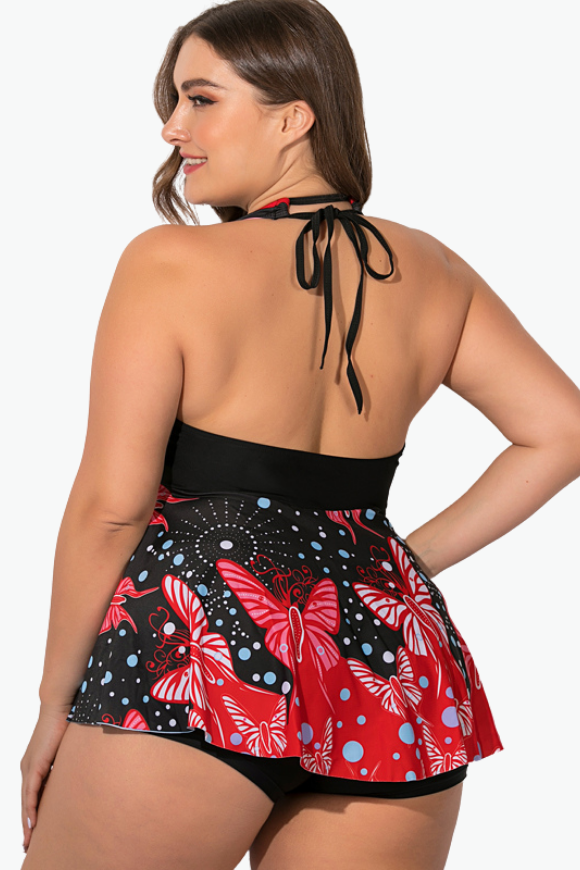 Purple Butterfly A-Line Two Piece Tankini Plus Size Swimsuit