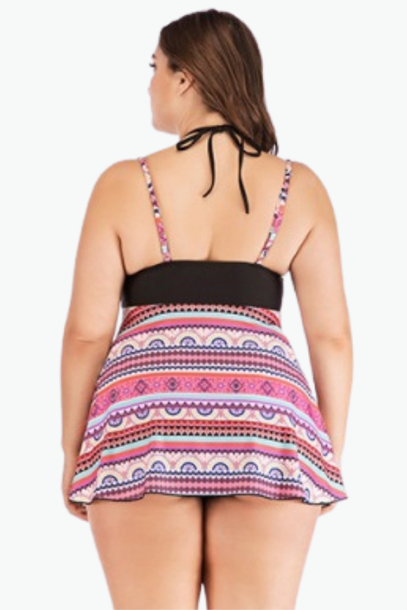 Blue Aztec Pattern Two Piece Plus Size Swimsuit