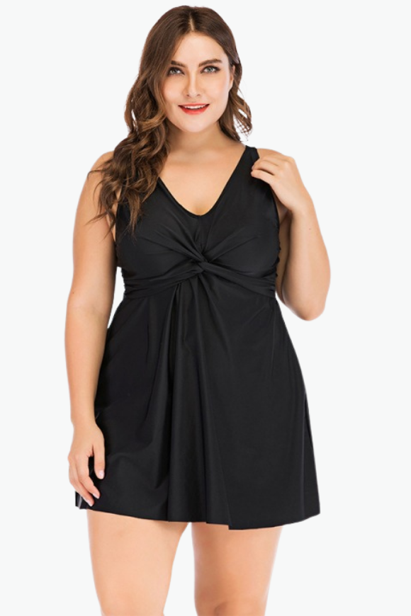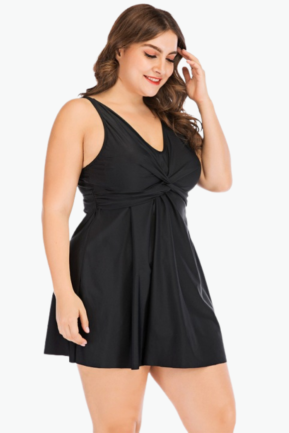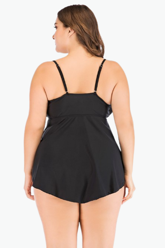 Black A-Line Two Piece Tankini Plus Size Swimsuit