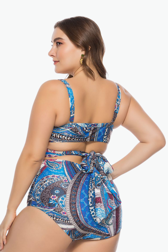 Floral Tie-up Two Piece Tankini Plus Size Swimsuit