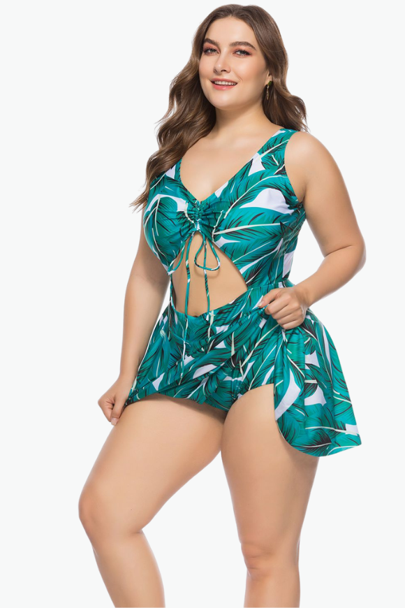 Tropical Green Leaves One Piece Plus Size Swimsuit