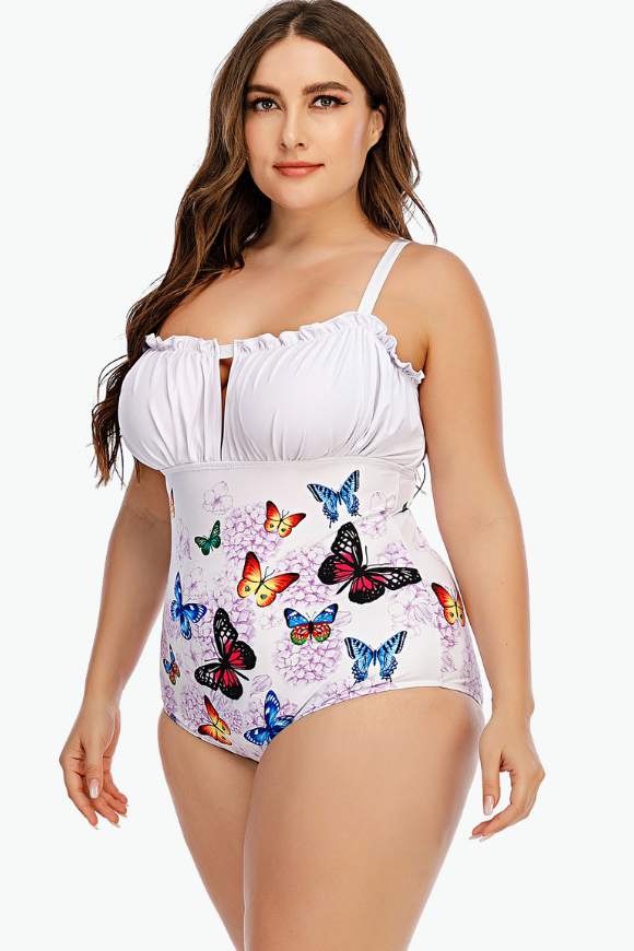 Butterfly Ruched One Piece Plus Size Swimsuit