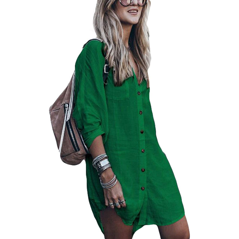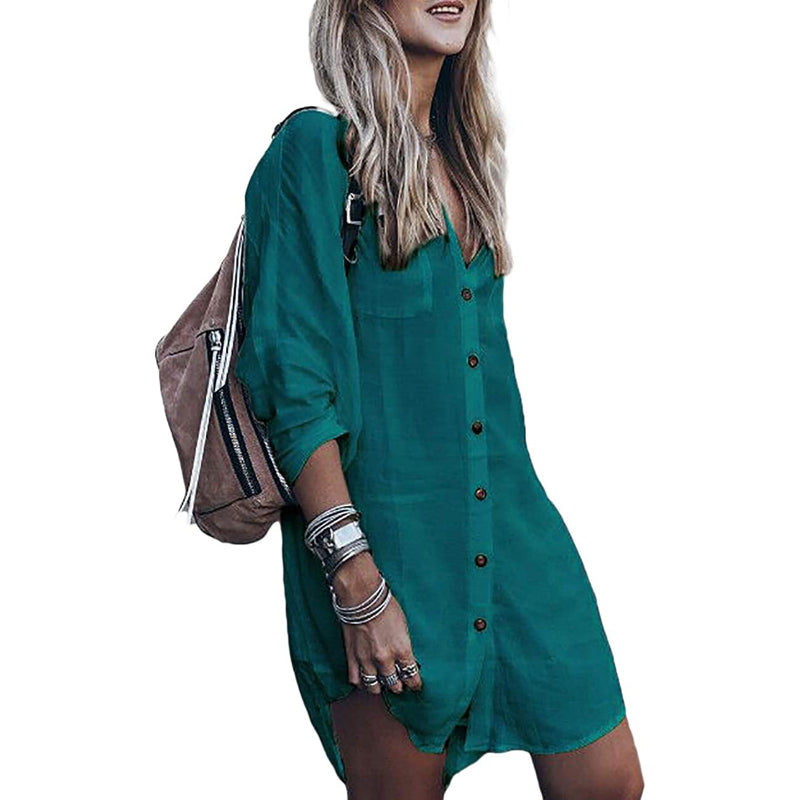 Women's Loose Long Sleeve Cover Ups Beach Shirt