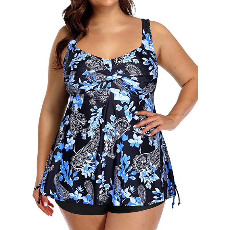Women Tankini Bathing Suits Flowy Swim Dress With Shorts