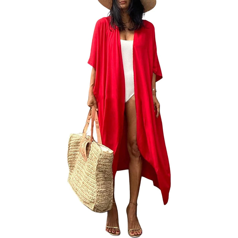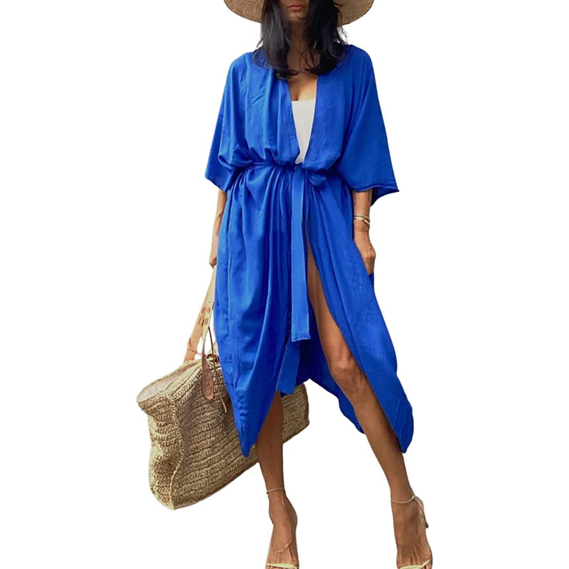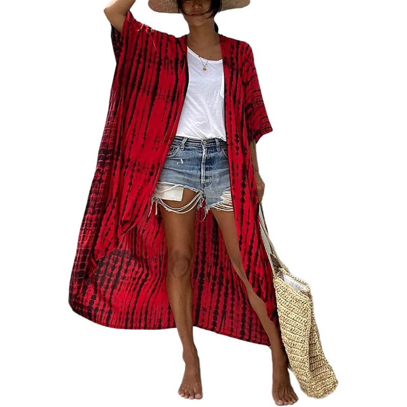 Summer Tie-Dye Long Open Front Kimono Swimsuit Cover-Up For Women