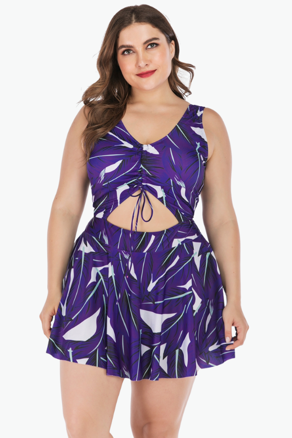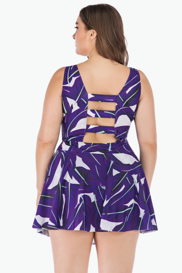Abstract Purple One Piece Plus Size Swimsuit