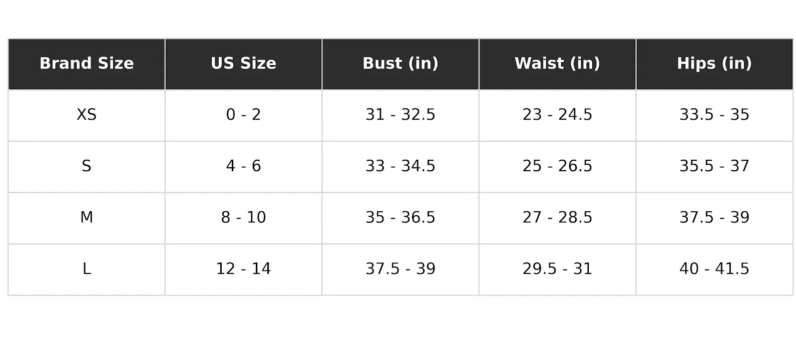 Size Chart(inches):