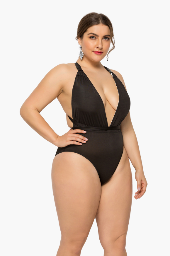 The Backless Tie Down One Piece Plus Size Swimsuit is all you need to get through summer in style! Our plus size swimwear from Curvy Waves offer comfort and style combining with sexy prints and curve-hugging fit. With bold patterns that shout "summer's here" and sizes that go up to a 6XL, there's nowhere else to go bikini shopping for! Instantly lengthen the look of your legs with the high-cut hemline! Our bikinis are designed to make sure they fit you right. And by right, we mean no tummy rolls, no camel toes, no muffin tops, and absolutely no discomfort!