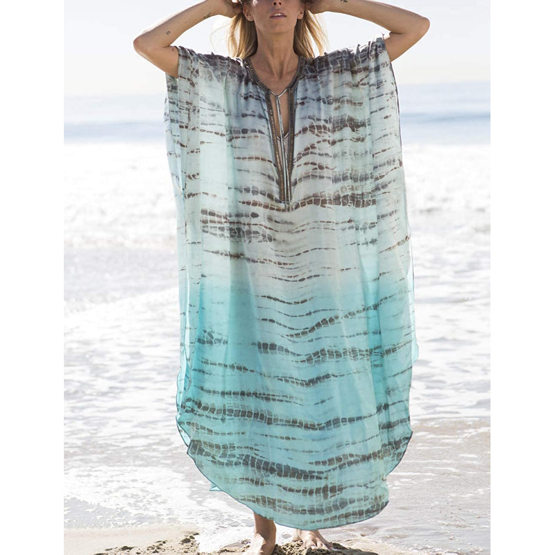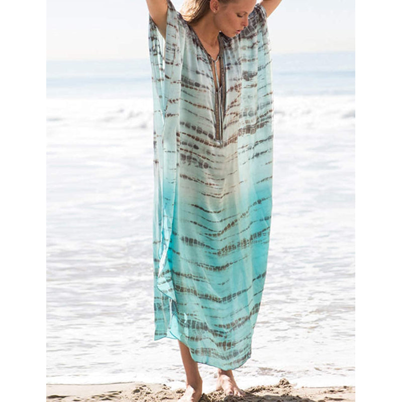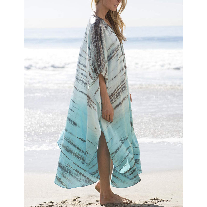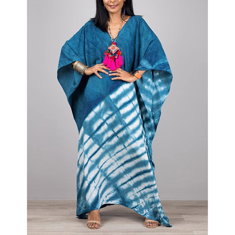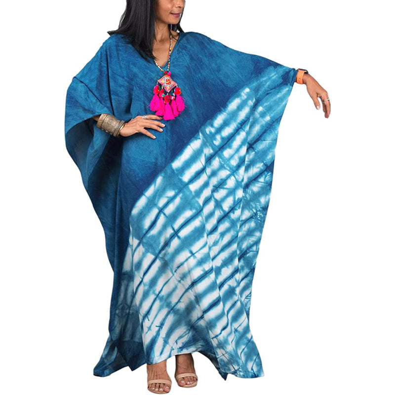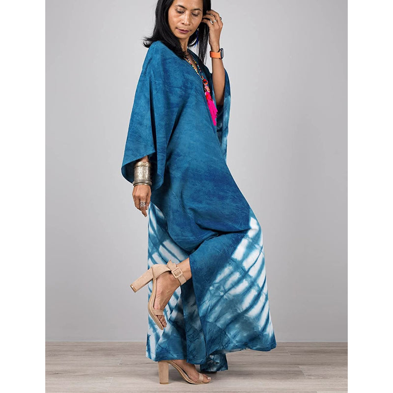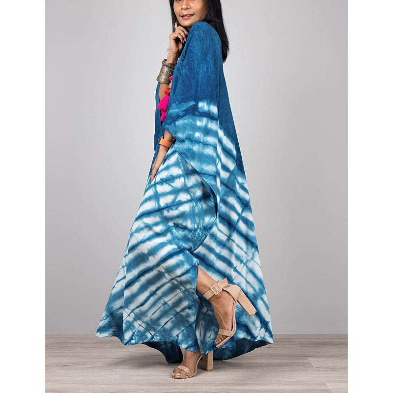 This Beach Maxi Dress With Cover-Up is a beautiful piece that has been crafted using the traditional hand-dying technique of Indonesia. It adds a stylish touch to your vacation wardrobe, and it can be worn as a swimsuit cover-up at the beach or as a fashionable evening dress, making it perfect for day-to-night wear. The loose-fitting fabric creates a flattering and slimming effect and the dress is semi-transparent. The open sides provide a touch of allure and make you look gorgeous and sexy. It can be worn for various events and occasions, from casual outings to formal events, making it a versatile addition to any woman's wardrobe.
