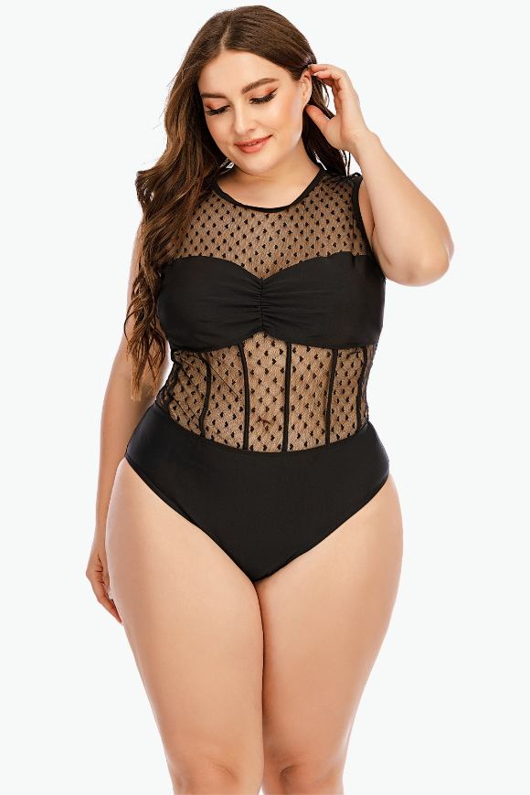 Black Mesh Bodice One Piece Plus Size Swimsuit