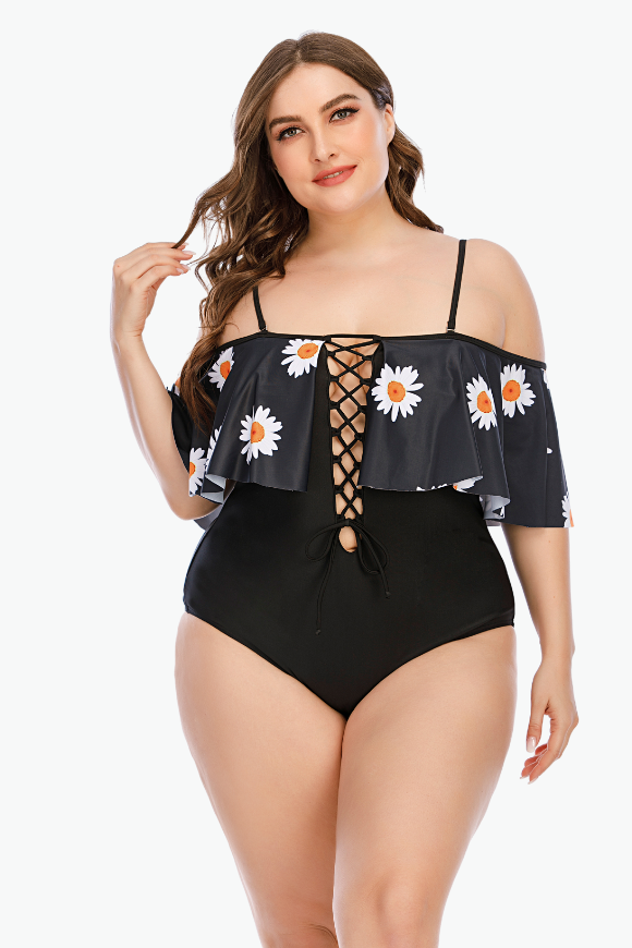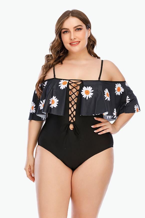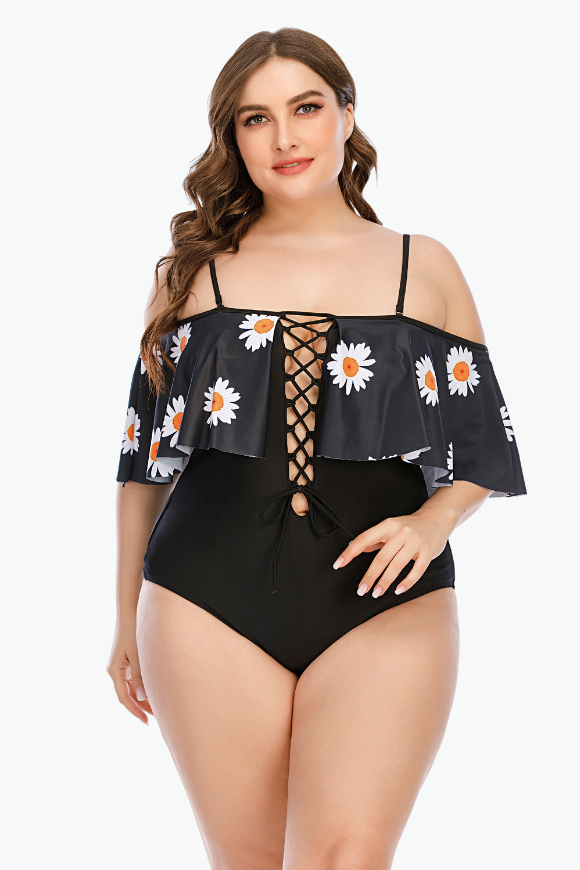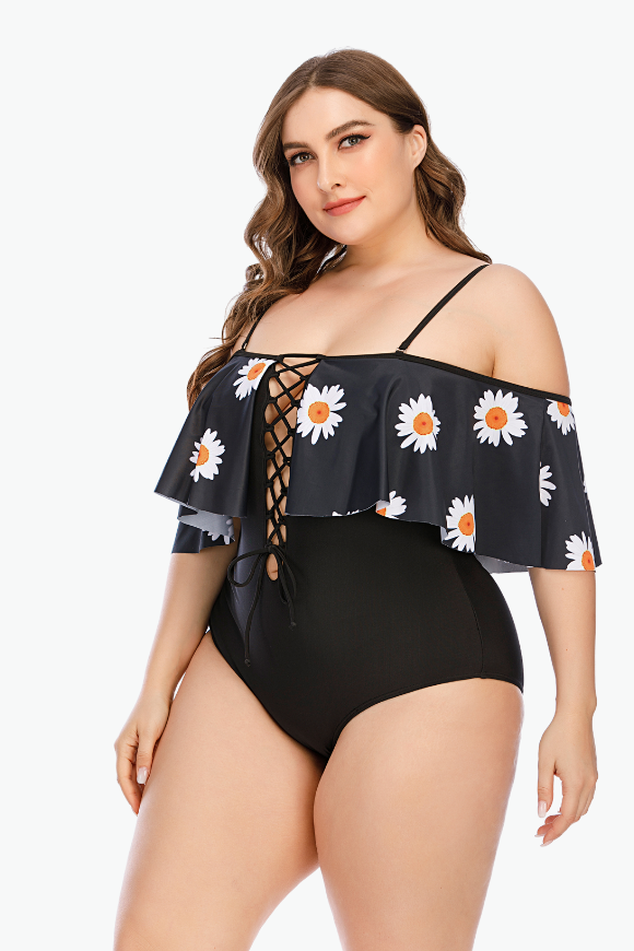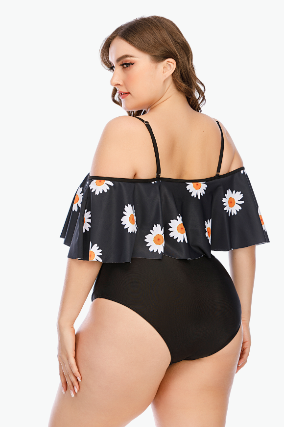 Black Off-Shoulder One Piece Plus Size Swimsuit