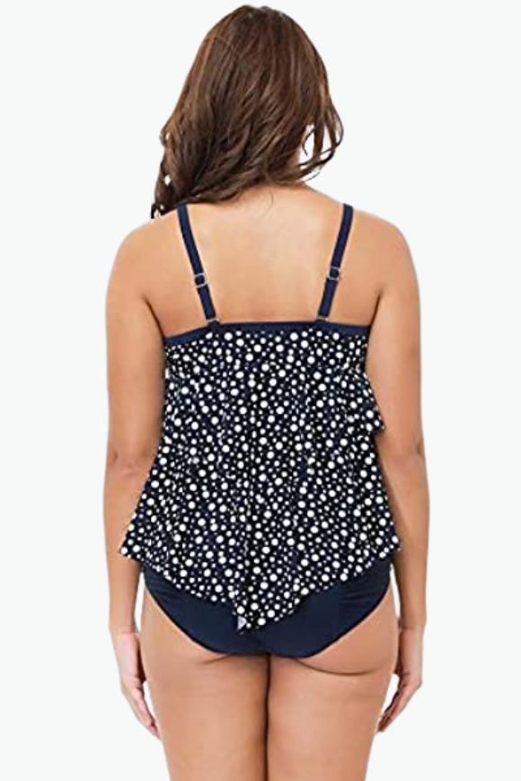 The Black Polka Dot Two Piece Tankini Plus Size Swimsuit is all you need to get through summer in style! Our plus size swimwear from Curvy Waves offer comfort and style combining with sexy prints and curve-hugging fit. With bold patterns that shout "summer's here" and sizes that go up to a 6XL, there's nowhere else to go bikini shopping for! Instantly lengthen the look of your legs with the high-cut hemline! Our tankinis are designed to make sure they fit you right. And by right, we mean no tummy rolls, no camel toes, no muffin tops, and absolutely no discomfort!