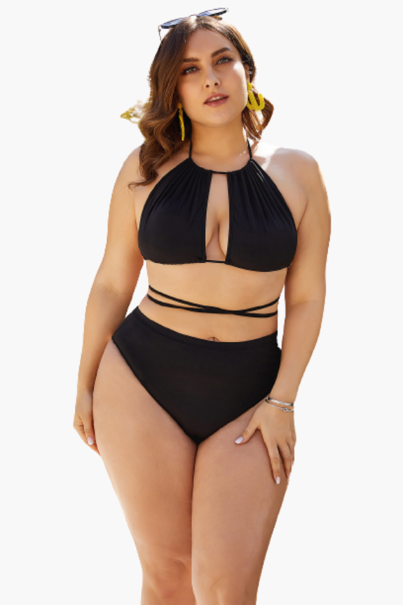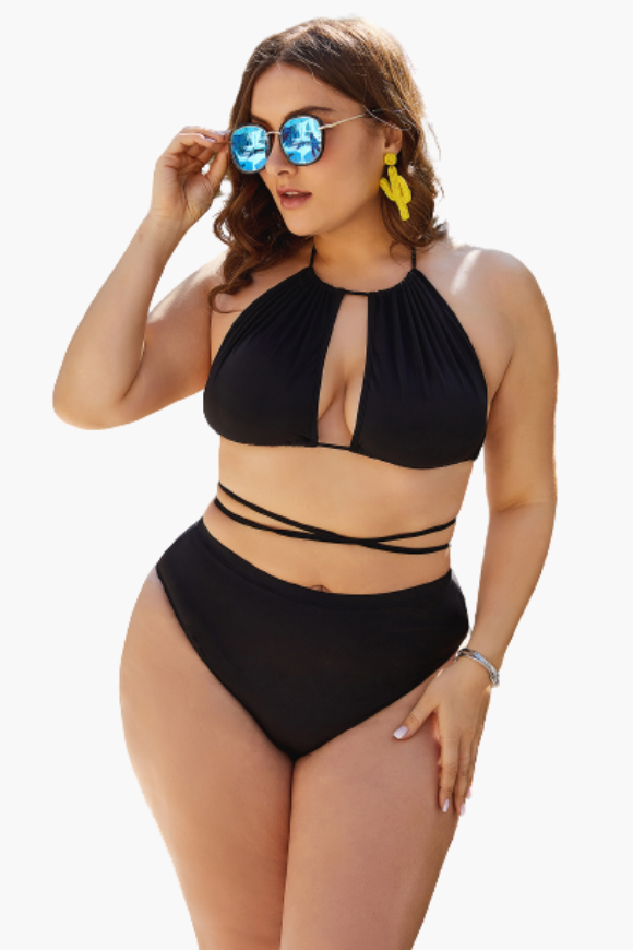 The Black Tieup Cutout Two Piece Swimsuit is all you need to get through summer in style! Our plus size swimwear from Curvy Waves offer comfort and style combining with sexy prints and curve-hugging fit. With bold patterns that shout "summer's here" and sizes that go up to a 6XL, there's nowhere else to go bikini shopping for! Instantly lengthen the look of your legs with the high-cut hemline! Our bikinis are designed to make sure they fit you right. And by right, we mean no tummy rolls, no camel toes, no muffin tops, and absolutely no discomfort!