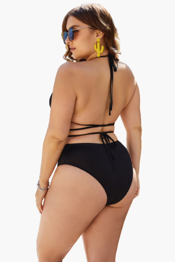 Black Tie-up Cutout Two Piece Plus Size Swimsuit