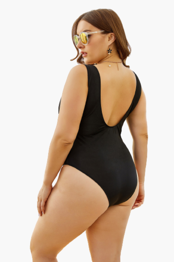 Black Triangle Cutout One Piece Plus Size Swimsuit