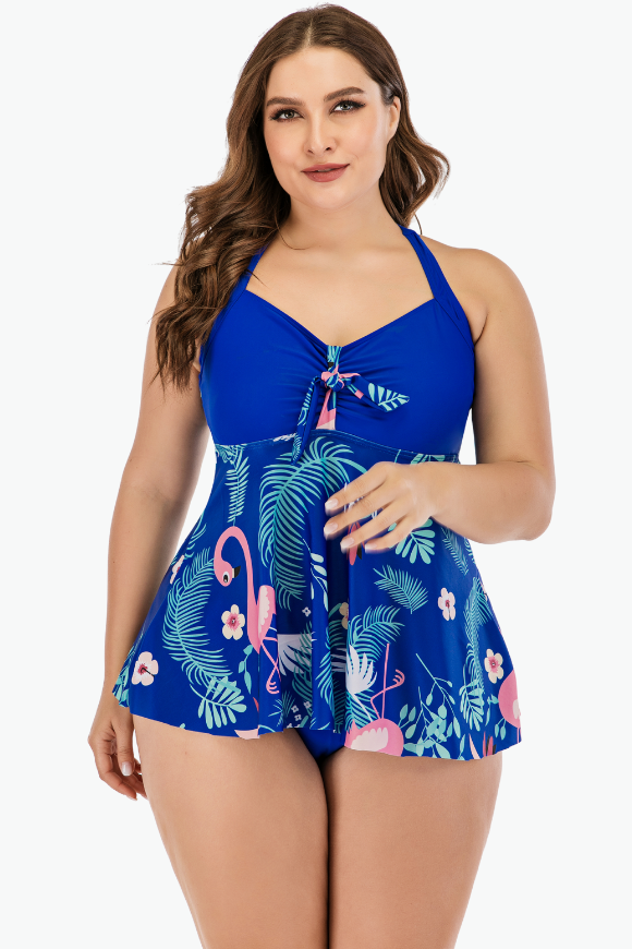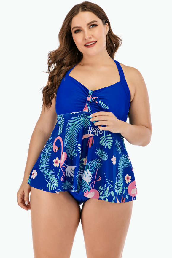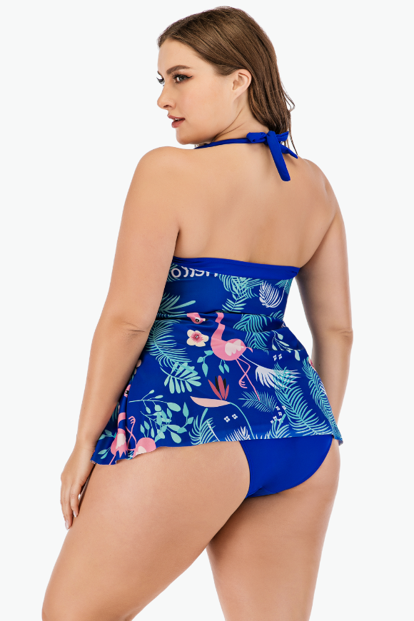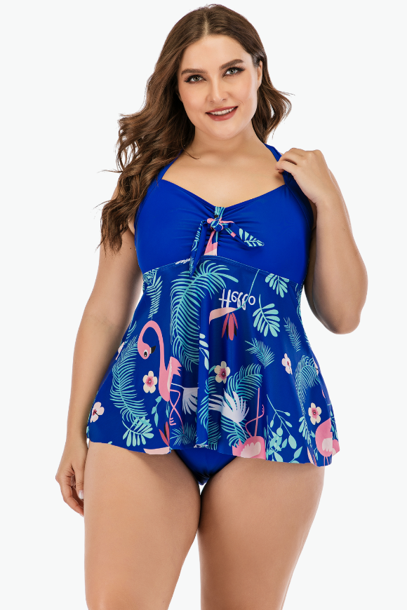 Blue Tropical Two Piece Tankini Plus Size Swimsuit