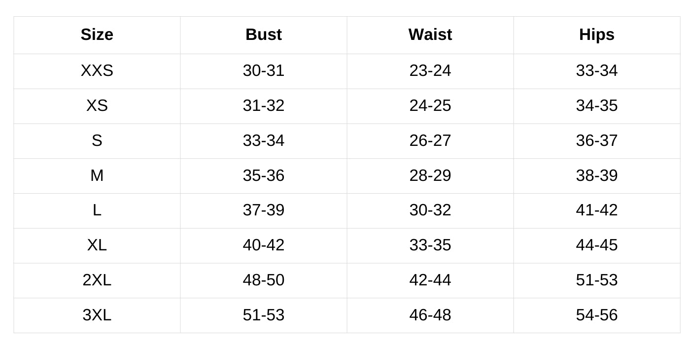 Size Chart(inch):