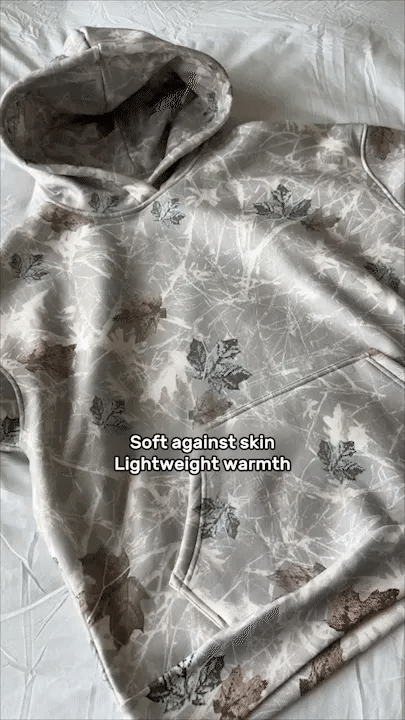 The Camo Leaf Printed Hoodie offers a perfect combination of style and functionality, ideal for those with a affection for the outdoors. Its unique design features a twist on traditional camouflage with a leafy pattern, creating a natural and earthy aesthetic. The color scheme includes forest greens, earthy browns, and touches of autumnal oranges and yellows, evoking the atmosphere of a walk through a sunlit forest.