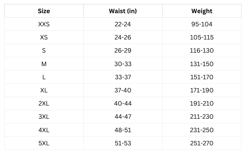 Size Chart (Inches):