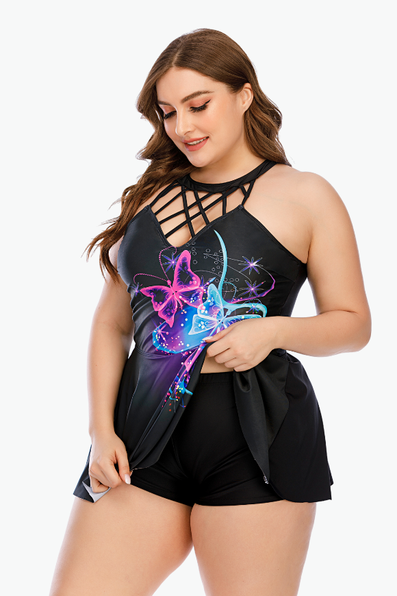The Halter Cutout One Piece Swimsuit Plus Size Swimsuit is all you need to get through summer in style! Our plus size swimwear from Curvy Waves offer comfort and style combining with sexy prints and curve-hugging fit. With bold patterns that shout "summer's here" and sizes that go up to a 6XL, there's nowhere else to go bikini shopping for! Instantly lengthen the look of your legs with the high-cut hemline! Our bikinis are designed to make sure they fit you right. And by right, we mean no tummy rolls, no camel toes, no muffin tops, and absolutely no discomfort!
