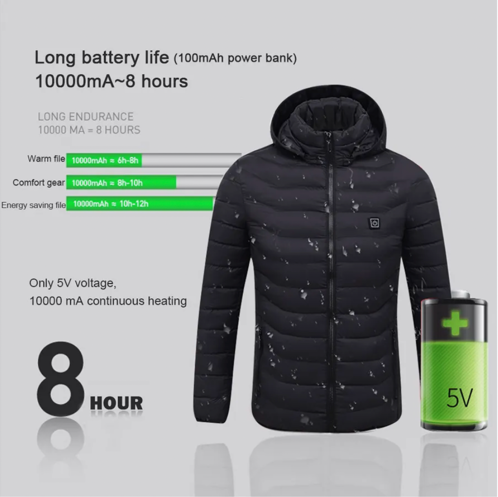 - The rechargeable battery provides long-lasting warmth, ideal for outdoor sports, hiking, camping, or daily wear in cold environments.