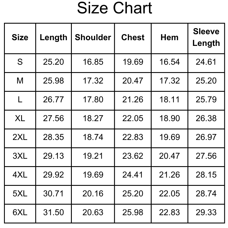 Size Measurements (Inches):