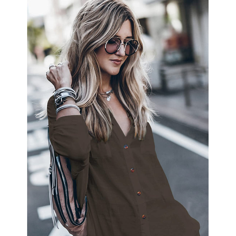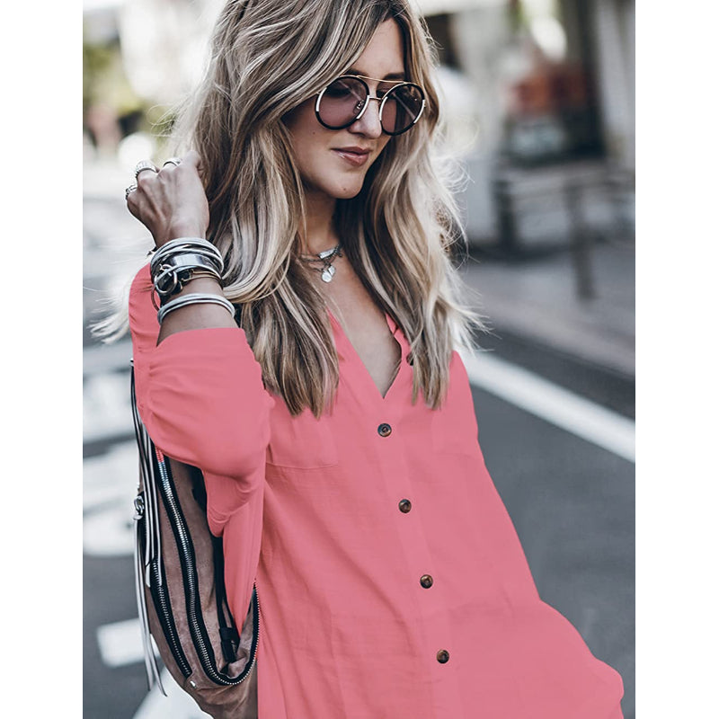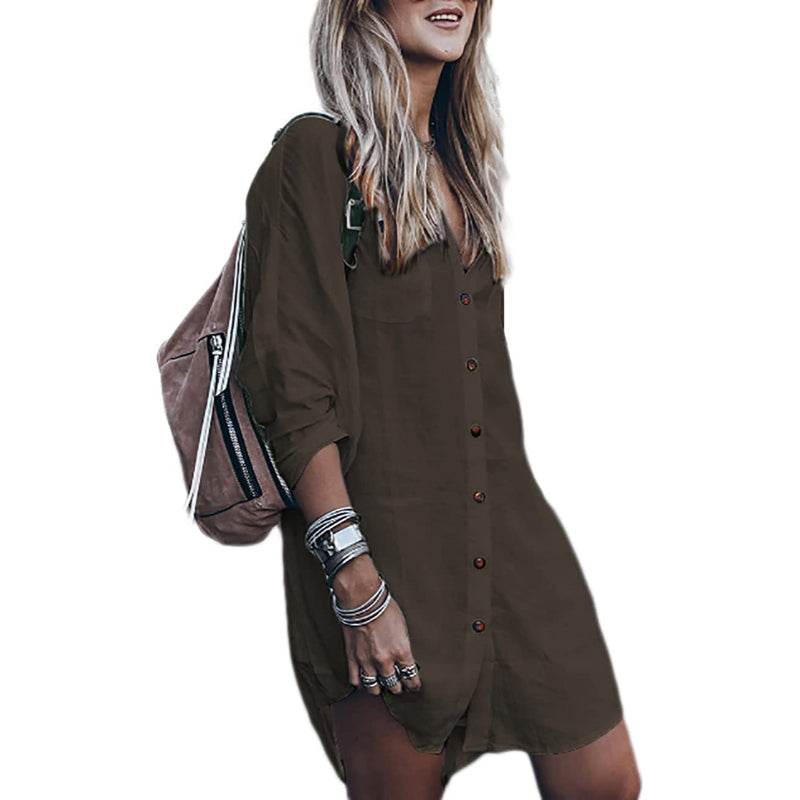 This Loose Long Sleeve Swimsuit Cover Ups Beach Shirt, designed for women, is suitable for both beach days and evening outings. It has a button front and a trendy collar. Its loose fit and long sleeves make it versatile for different occasions, such as social events, everyday wear, and street fashion. The dimensions of this shirt are 47.24 inches for the bust and waist, and 39.37 inches for the length. Keep in mind that it may wrinkle and shrink after the first wash, but can be restored to its original form by air drying and ironing it.