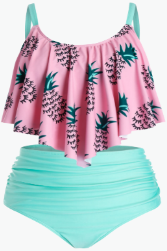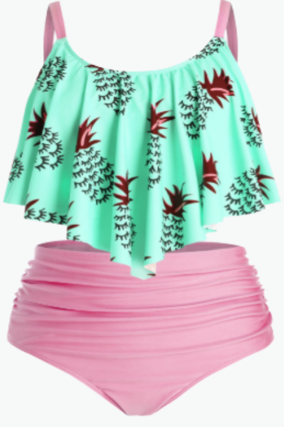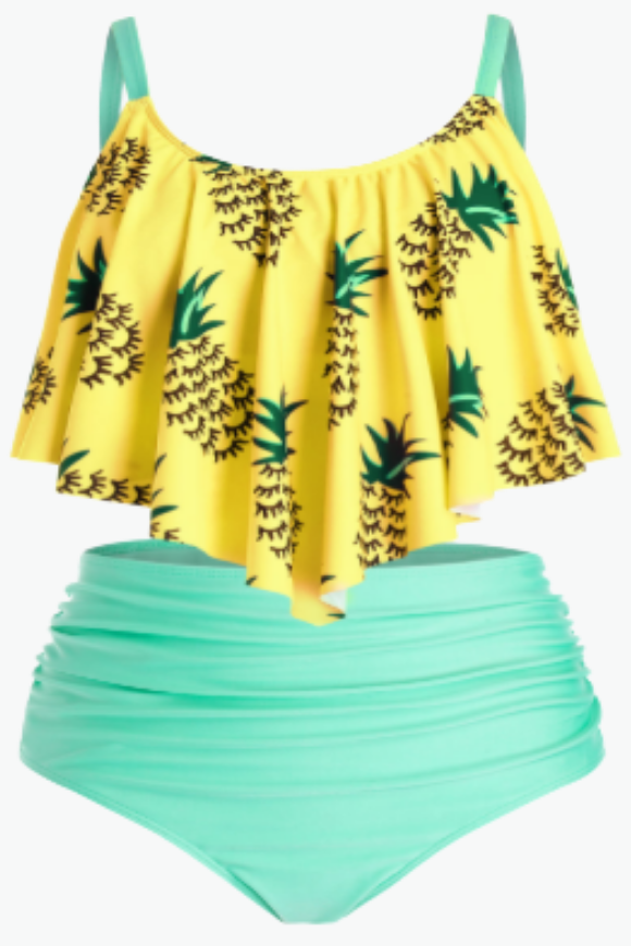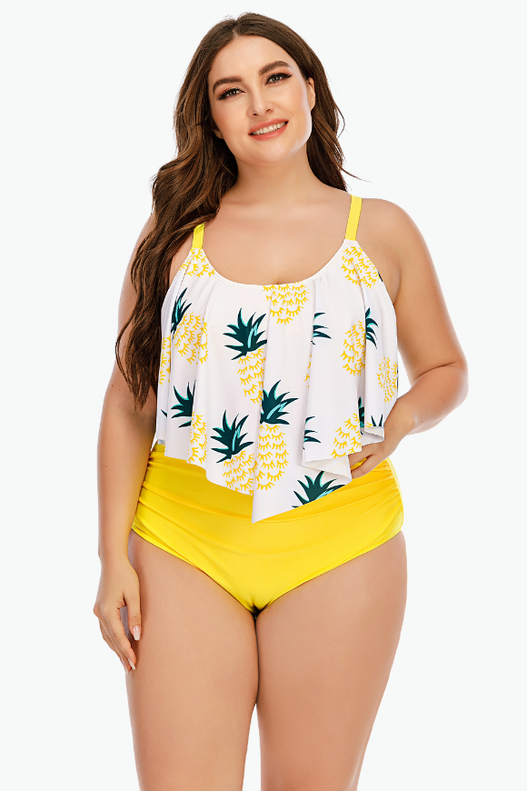 Pastel Pineapples Two Piece Tankini Plus Size Swimsuit