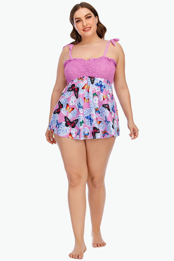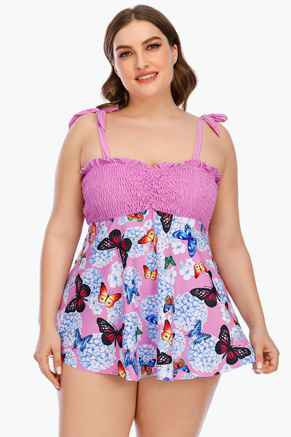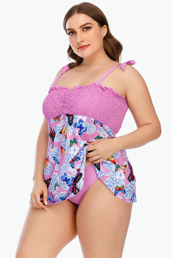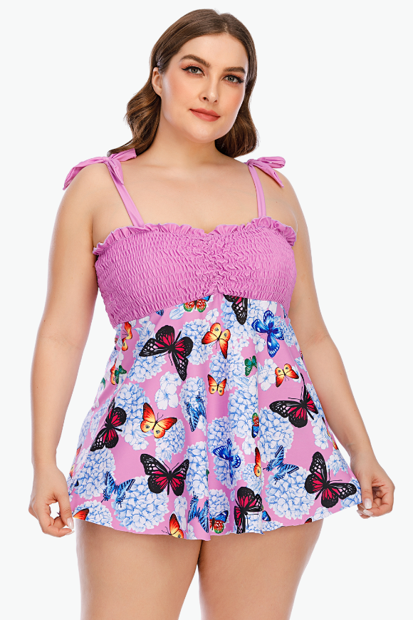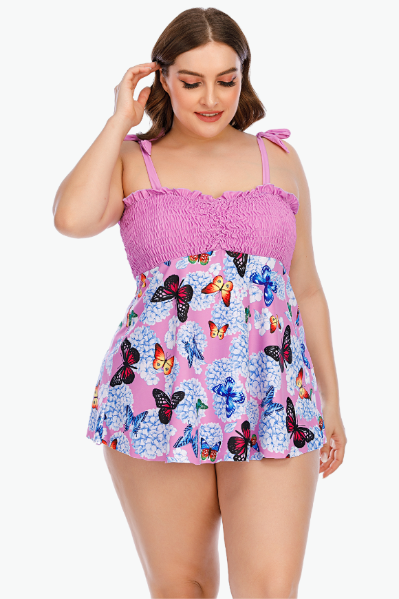 Pink Butterflies Two Piece Tankini Plus Size Swimsuit