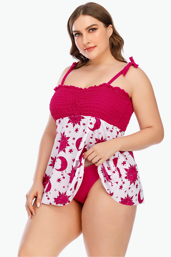 Pink Moon Stars Two Piece Tankini Plus Size Swimsuit