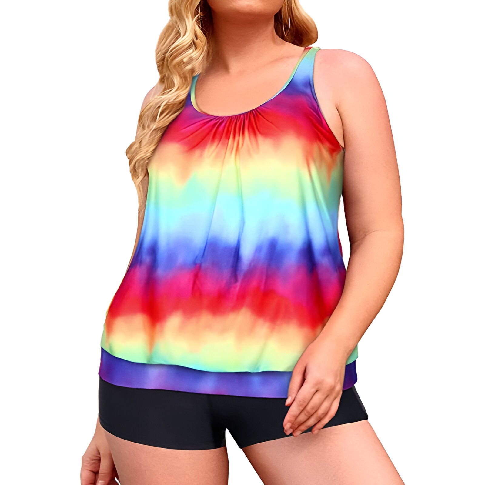 This Plus Size Tankini Swimsuits For Women features adjustable shoulder straps for convenience and a built-in padded bra for added support. The two-piece swimsuit includes a blouson tankini top and boyshorts bottom. The tankini top is designed with a wire-free chest pad, elastic top hem, and a slimming waistline. The black high-waisted boy shorts are suitable for women of all ages. The pink mandala geometric tankini has a loose-fit design that flatters all figures, covering imperfections while still highlighting curves. The trendy slim silhouette is perfect for swimming, pool parties, vacations, beaches, and sports. The swimsuit is made of 85% polyester and 15% spandex, providing a smooth, soft, stretchy, and durable material.