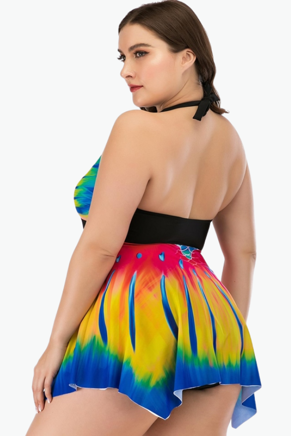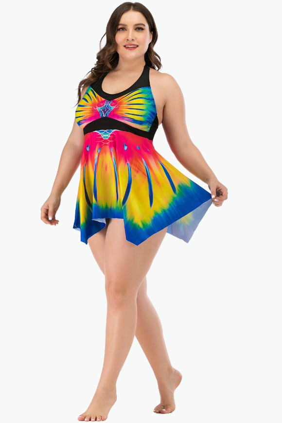Rainbow Multicolor Two Piece Tankini Plus Size Swimsuit