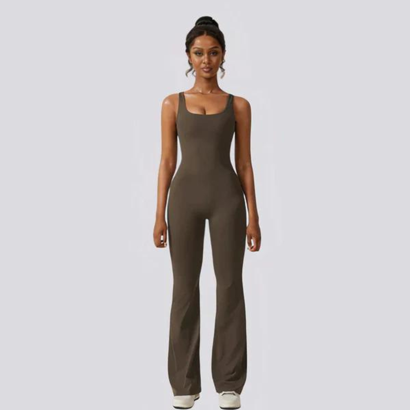 Introducing our Sleeveless Flared Jumpsuit with Square Neckline—a versatile piece that seamlessly combines style and comfort. Whether you're engaging in active sessions or seeking relaxation, this jumpsuit is tailored to enhance your silhouette, offering a confidence boost wherever you go. The square neckline and open back add a touch of beauty, making it a standout wardrobe essential.