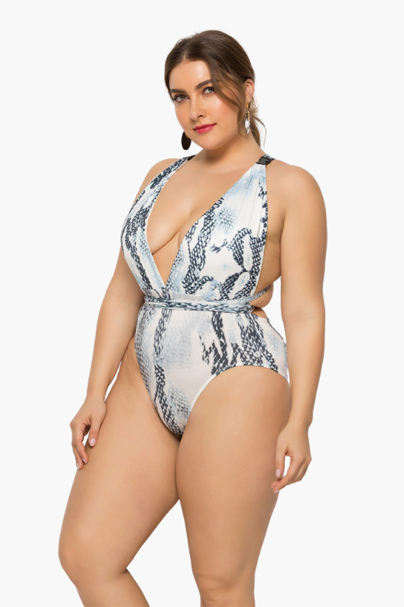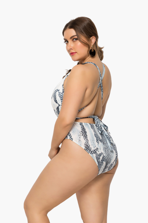 The Snake Printed One Piece Plus Size Swimsuit is all you need to get through summer in style! Our plus size swimwear from Curvy Waves offer comfort and style combining with sexy prints and curve-hugging fit. With bold patterns that shout "summer's here" and sizes that go up to a 6XL, there's nowhere else to go bikini shopping for! Instantly lengthen the look of your legs with the high-cut hemline! Our bikinis are designed to make sure they fit you right. And by right, we mean no tummy rolls, no camel toes, no muffin tops, and absolutely no discomfort!