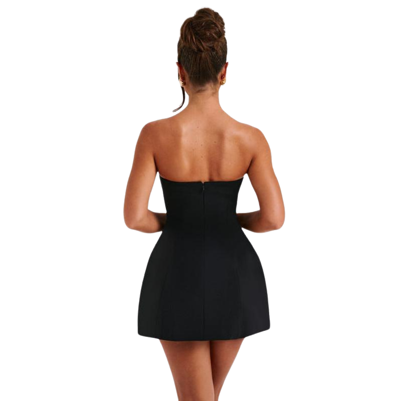Introducing our elegant mini dress, designed for sophisticated and stylish occasions. This strapless dress features a unique bubble-shaped skirt and detailed seam work, providing a refined and modern look.