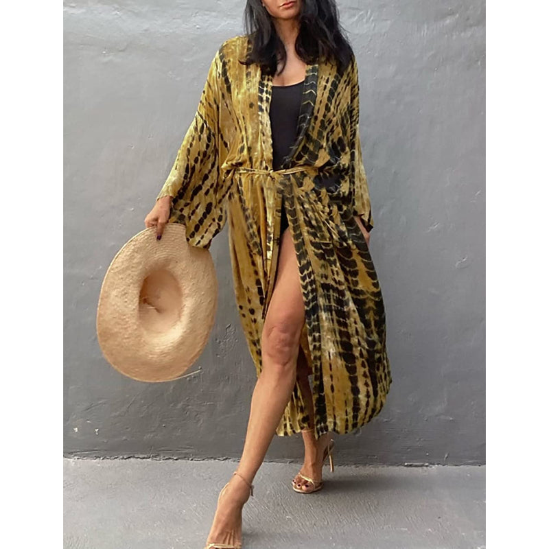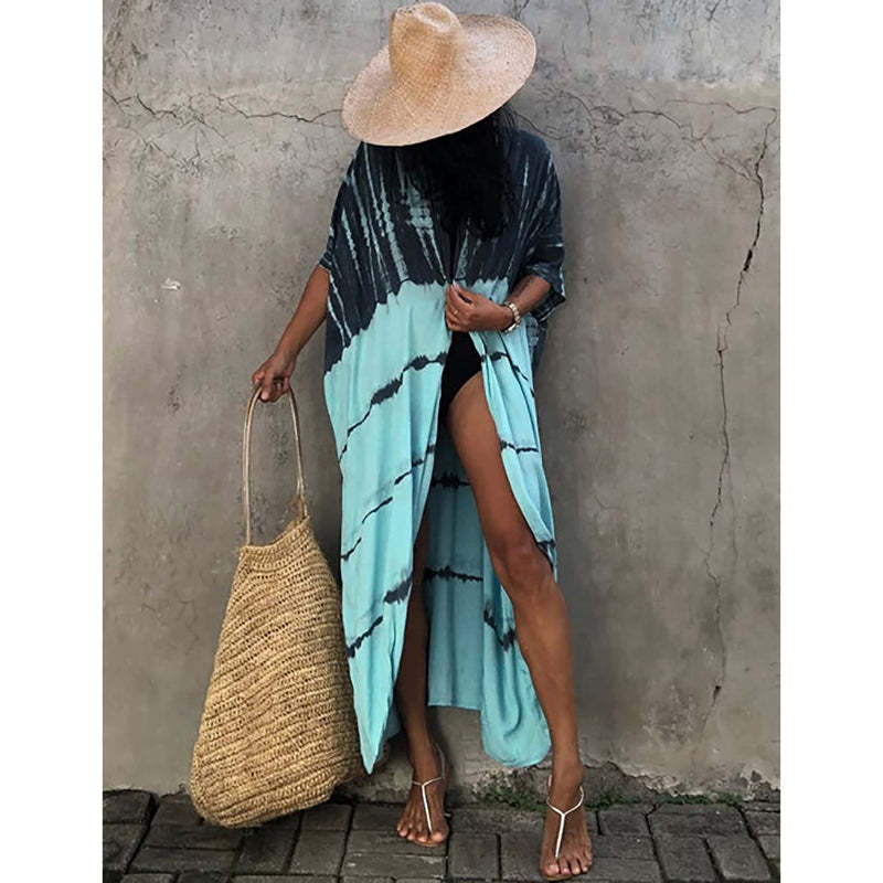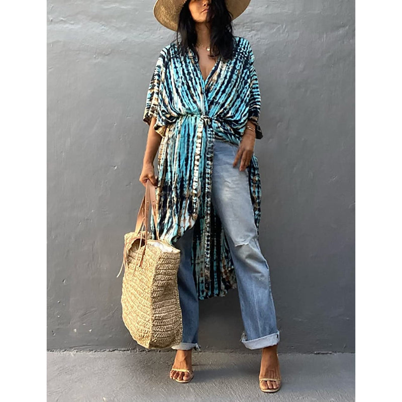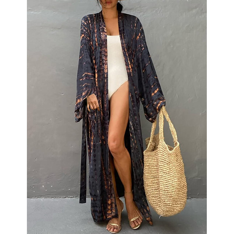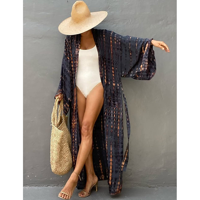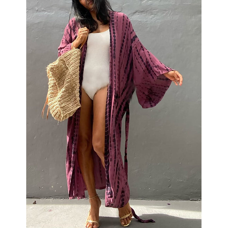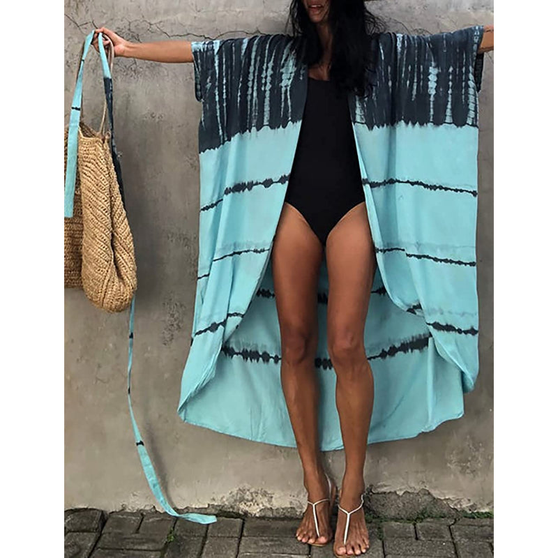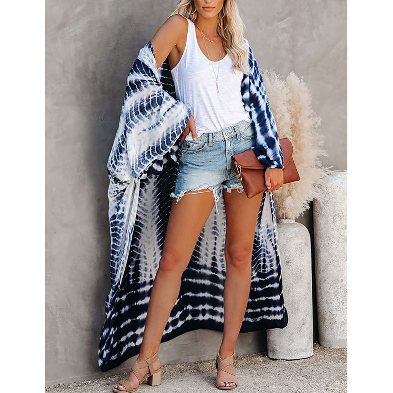 Tie Dye Open Front Long Kimono Swimsuit Cover Up