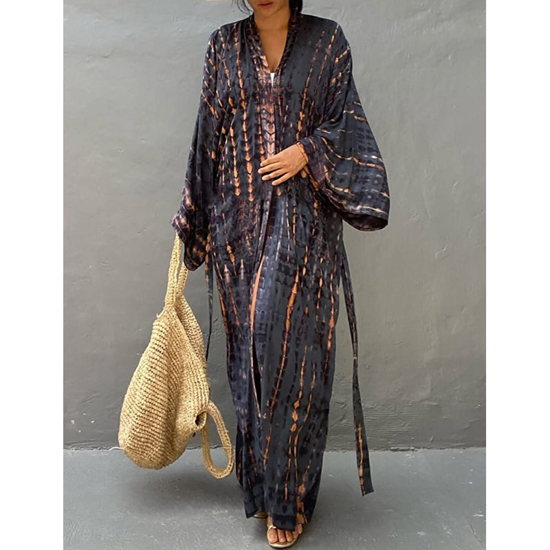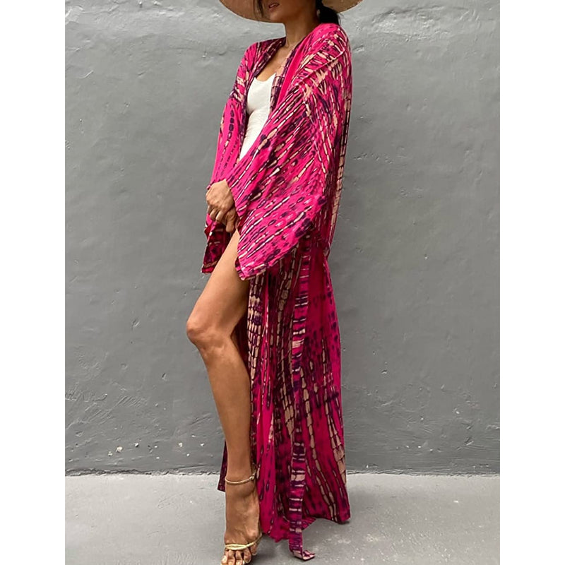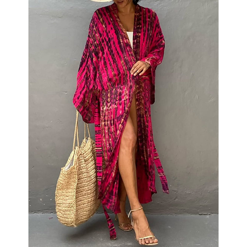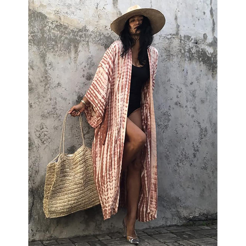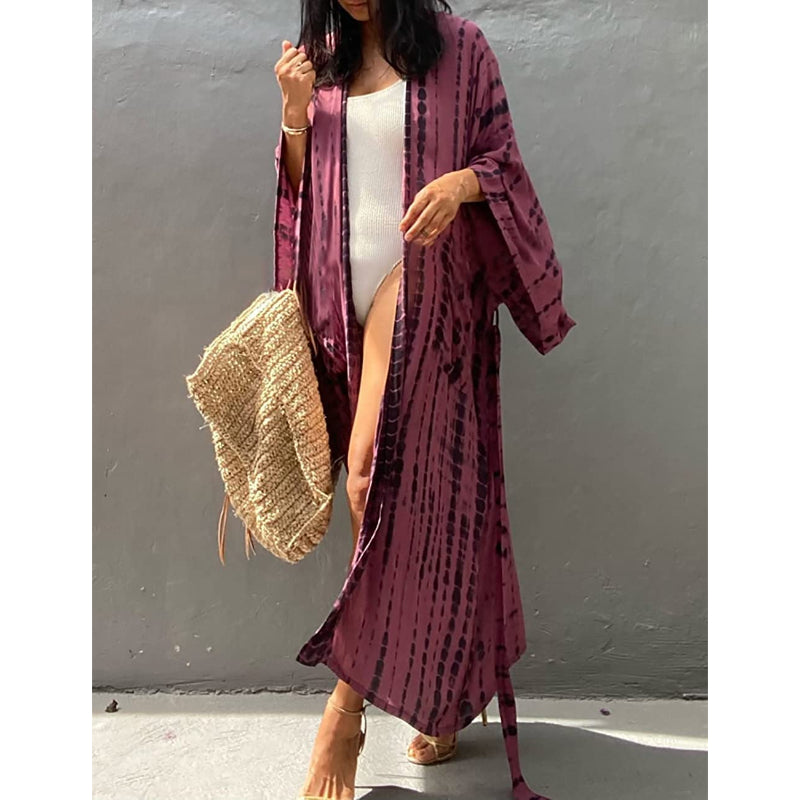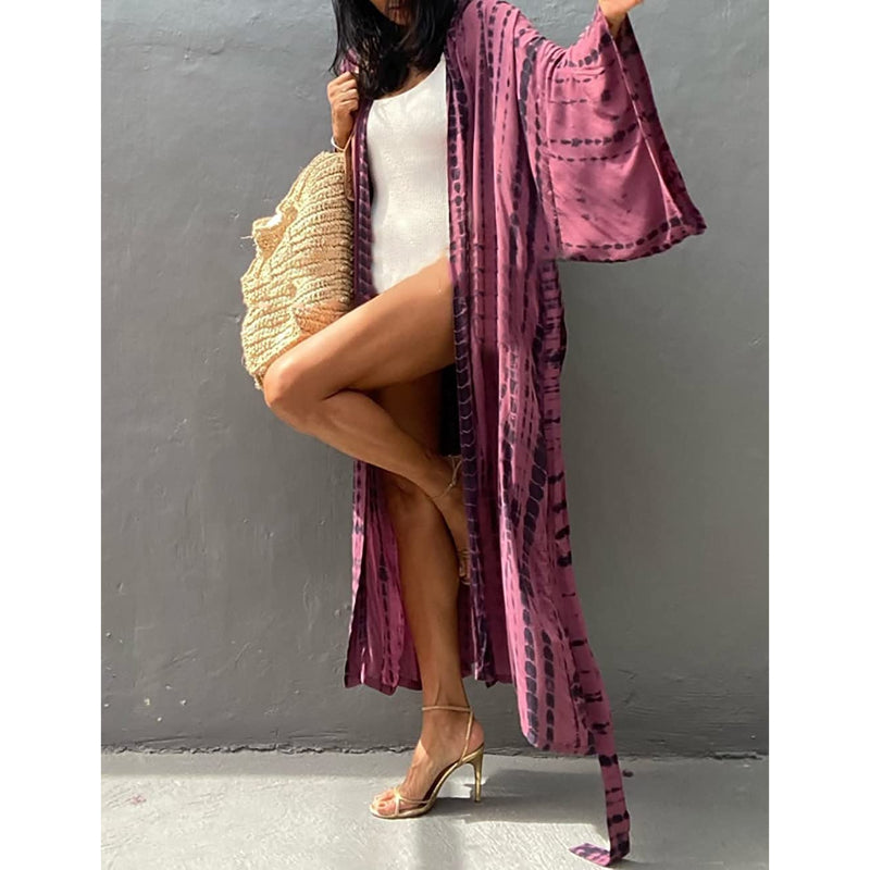 Tie-Dye Open Front Long Kimono Swimsuit Wraps For Women