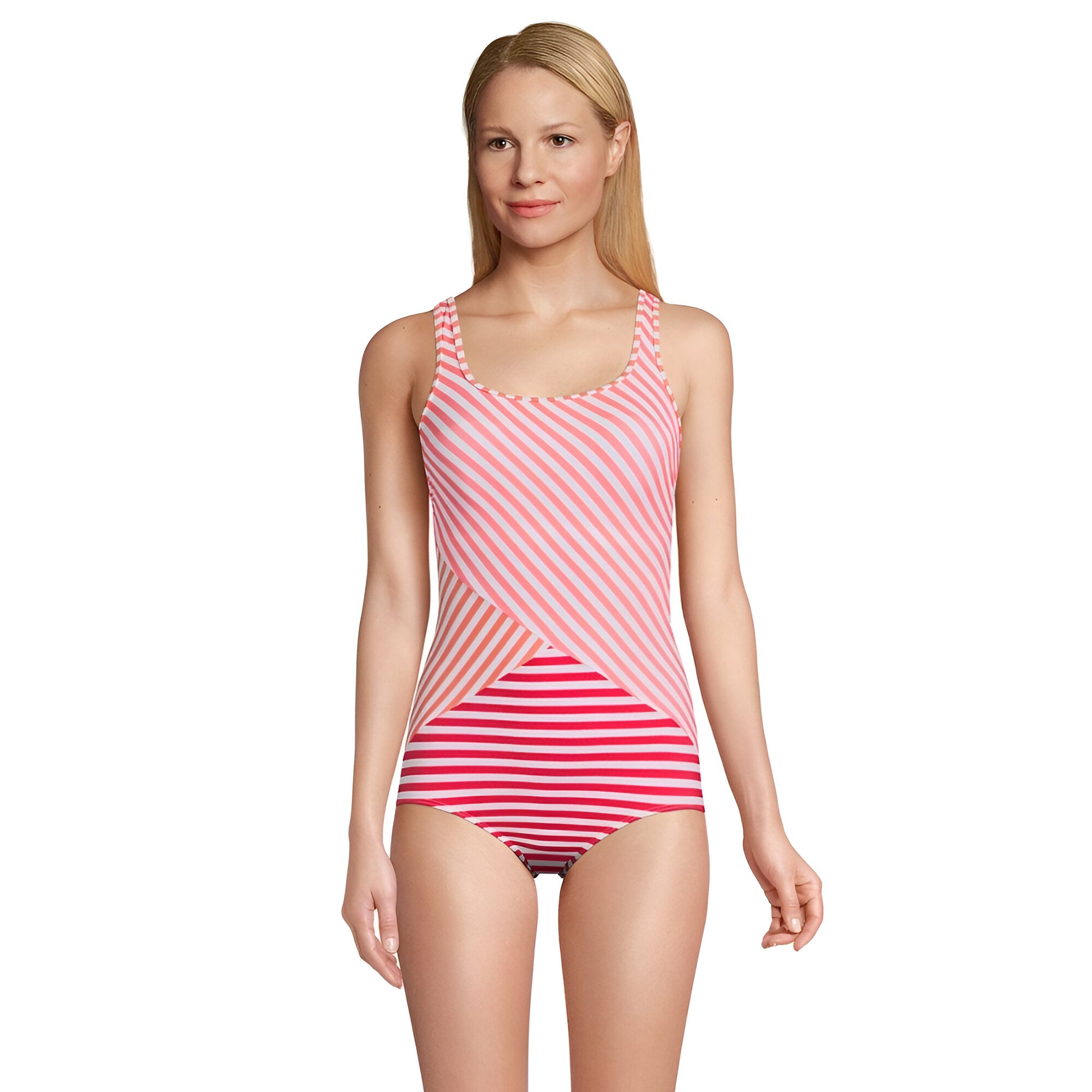The Tugless Sporty Swimsuit is the perfect choice for your next beach day. This one-piece swimsuit is made with a lightweight and stretchy fabric that moves with you, so you can enjoy the ocean without worrying about uncomfortable tugging or pinching. The built-in shelf bra offers support and the adjustable shoulder straps allow for a custom fit. This swimsuit also features a modest cut and a medium-coverage bottom, making it perfect for all your summer activities. Whether you're swimming, boogie boarding, or just lounging on the beach, the Tugless Sporty Swimsuit has you covered.