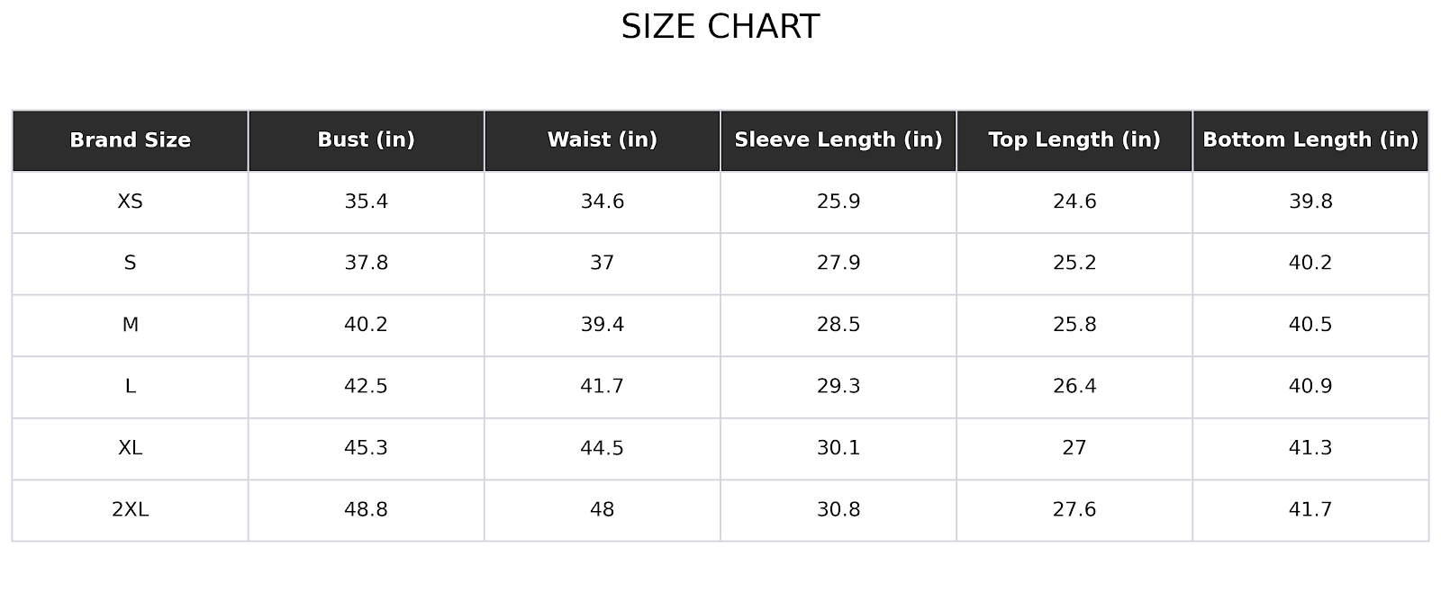 Size Charts(inches):