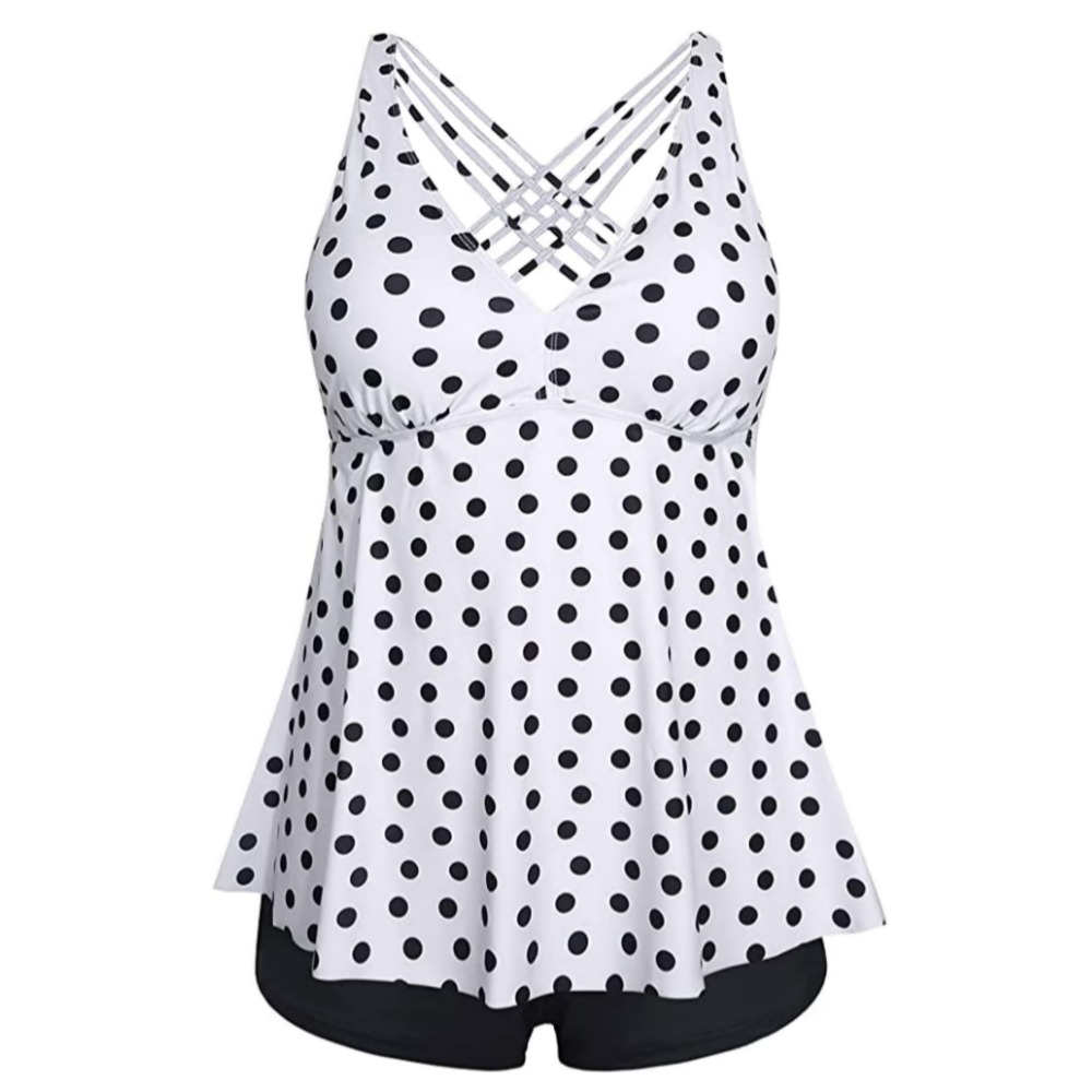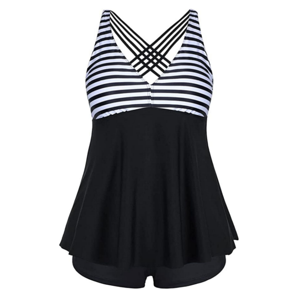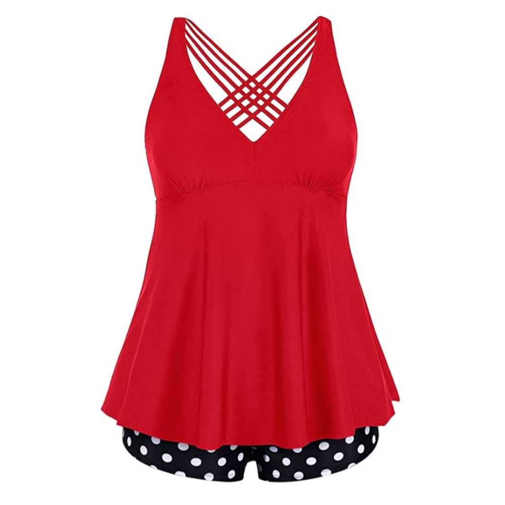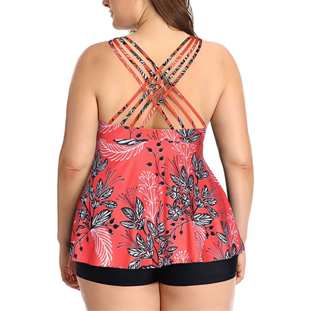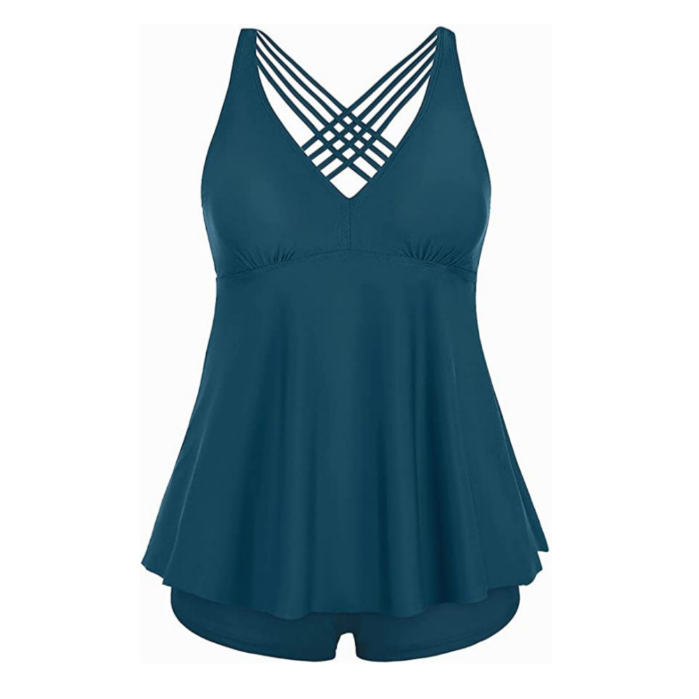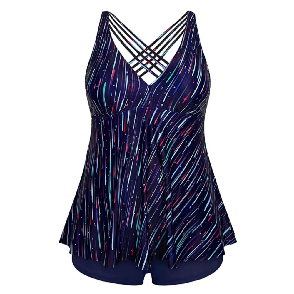 Two Pieces V Neck for Women is designed for women and features a V-neck and flowy tankini top with shorts that perfectly cover your belly, making you look slimmer. The cross straps at the back of the top create a beautiful and flattering look. The tankini also includes soft boyshorts for added comfort during swimming, beach parties, vacations, and running. The swimsuit offers great support with a removable, padded push-up bra that helps to mold your shape. The material of this tankini is made of 82% polyester and 18% spandex, making it soft, quick-drying, stretchy, and comfortable.
