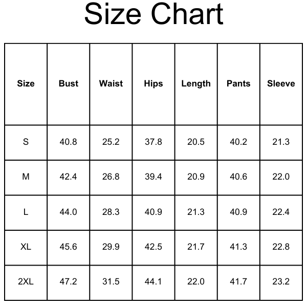 Size Chart(inches):