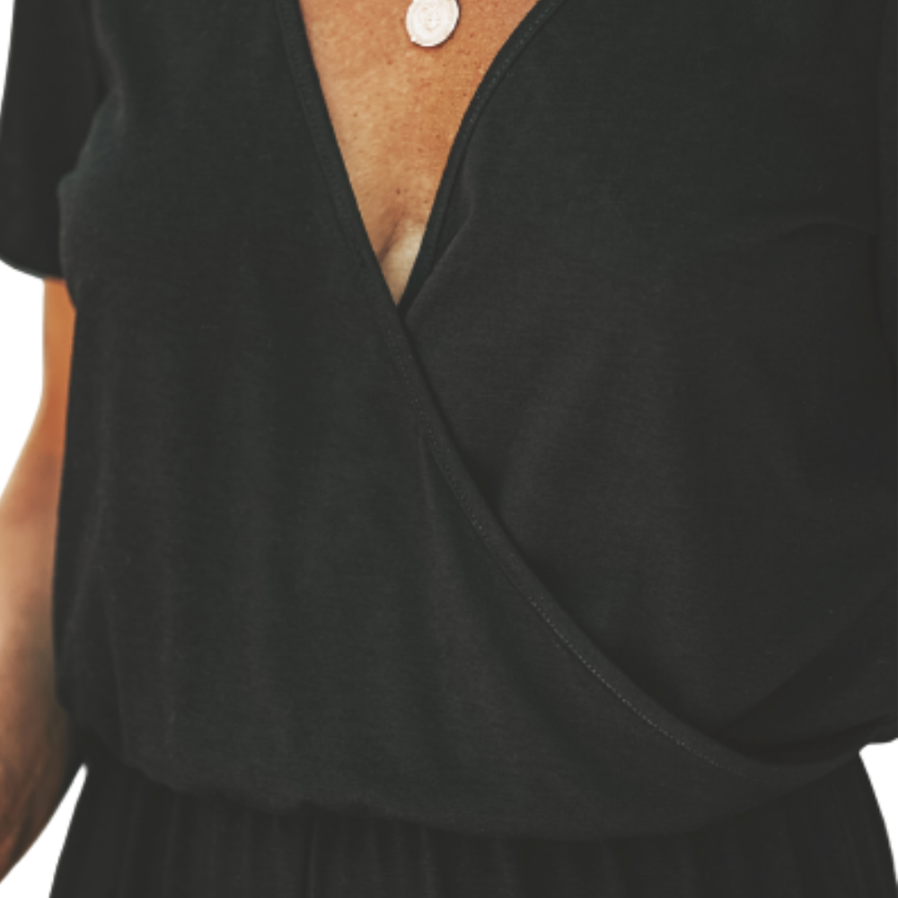 This V-neck Maxi Short Sleeve Jumpsuit is the perfect way to update your wardrobe. The maxi jumpsuit features a v-neck and short sleeves, which gives it a modern and stylish look. The jumpsuit is designed to be comfortable, making it perfect for any occasion. The v-neck adds a touch of elegance and makes it appropriate for evening plans. Whether you're going out for a night on the town or attending a fancy event, this jumpsuit will keep you looking and feeling great. The jumpsuit is made of high-quality, lightweight fabric that is breathable and comfortable to wear. The elegant design of the jumpsuit makes it a versatile option that can be dressed up or down depending on the occasion.